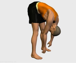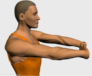 Entrelazamos las manos, con las palmas de las manos hacia delante, estiramos los brazos hacia delante